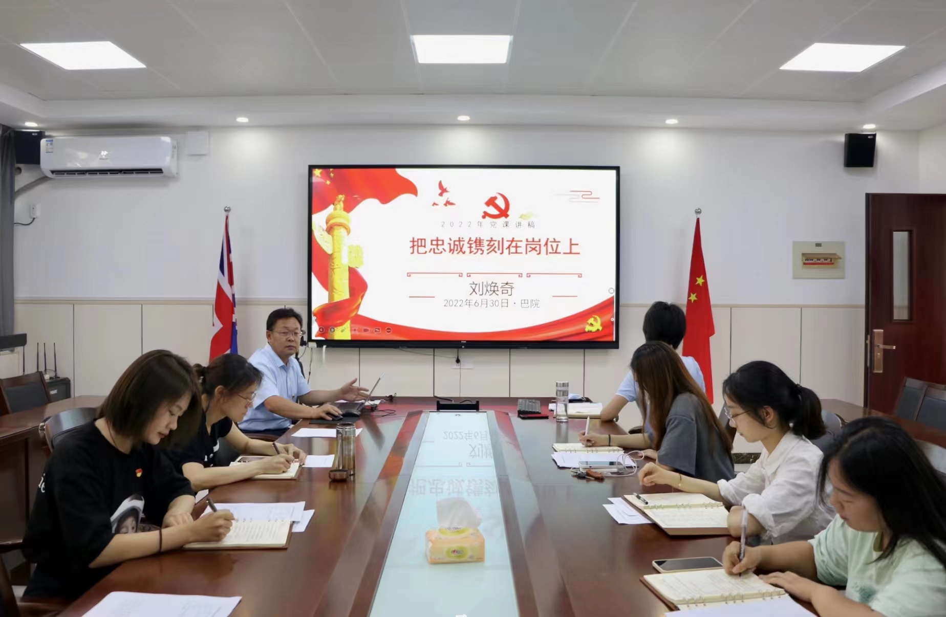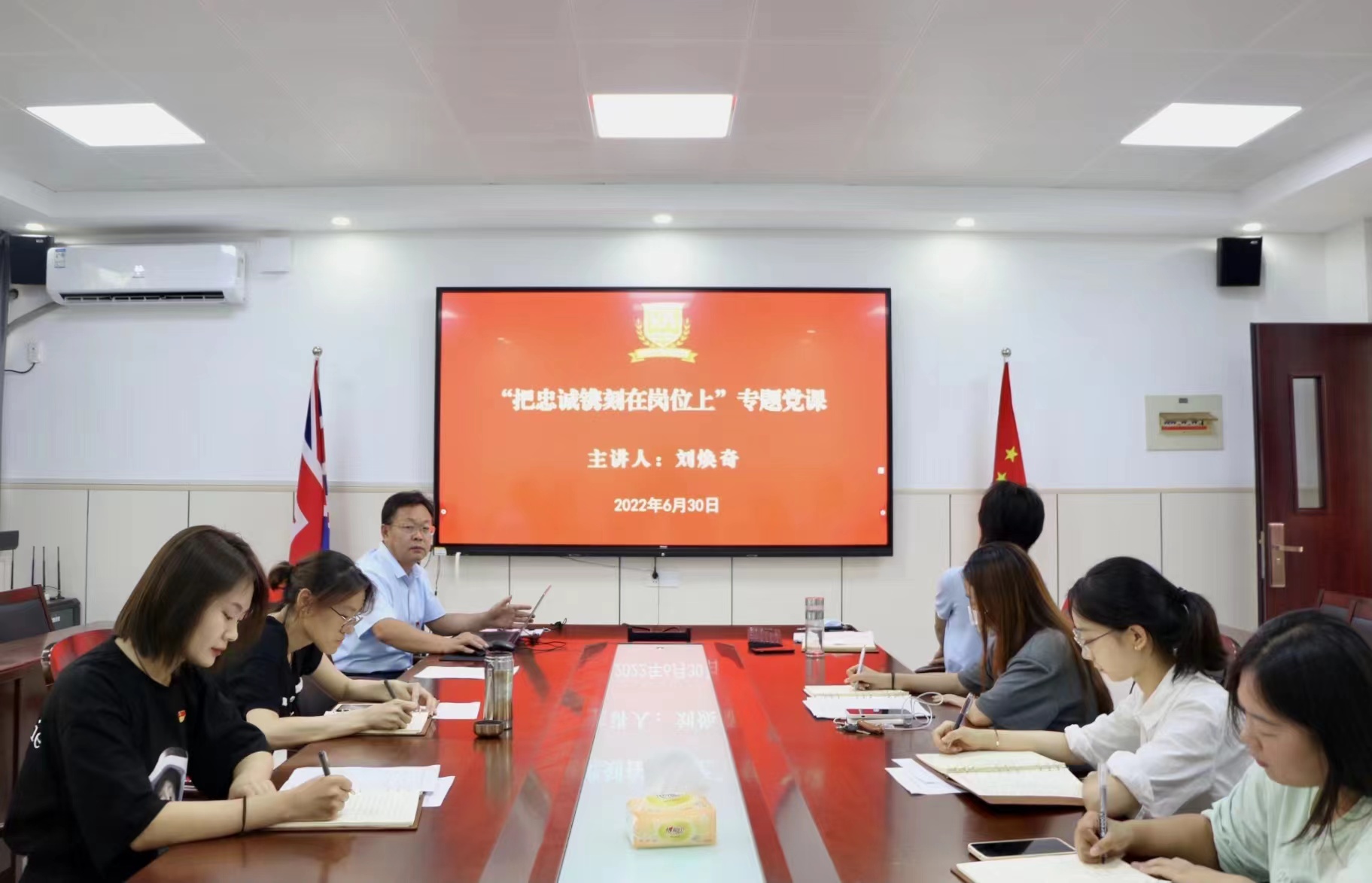 为庆祝七一建党节,提升基层党组织的凝聚力、战斗力,发挥党员的先锋模范引领作用,6月30日,bw西汉姆联于教学楼G205会议室开展“把忠诚镌刻在岗位上”专题党课。党课由公司党总支书记刘焕奇主讲,全体师生党员参加。