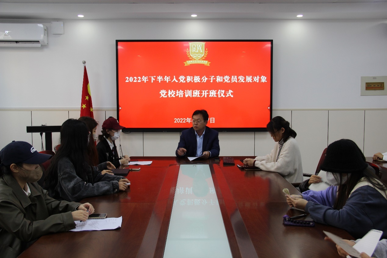 会上,刘璐首先点明了开展此次培训班的背景、主要内容和重要意义。她就此次培训过程向所有参加此次培训班的党员发展对象及入党积极分子提出几点要求:一是要重视培训机会,遵守培训纪律。按照计划完成线上学习,及时完成理论学习,做到自主学习与集体学习相结合,确保顺利通过考试。二是端正入党动机,全面杜绝功利化心态。坚定对马克思主义、中国特色社会主义的信仰,以此次理论学习为契机提升政治理论素养,提高政治站位。三是发挥带头引领作用,奋勇争先,在座所有同学作为党团结带领各族人民实现第二个百年奋斗目标的亲历者、见证者、参与者和建设者,要将自己个人理想追求融入党和国家的发展中,将小我融入大我,利用中外合作办学的优势,在正确认识中国特色与国际比较中坚定理想信念,在国际交流合作中讲好中国故事。四是打好专业基础,锤炼过硬本领。积极参加院校组织的活动,做到知行合一。