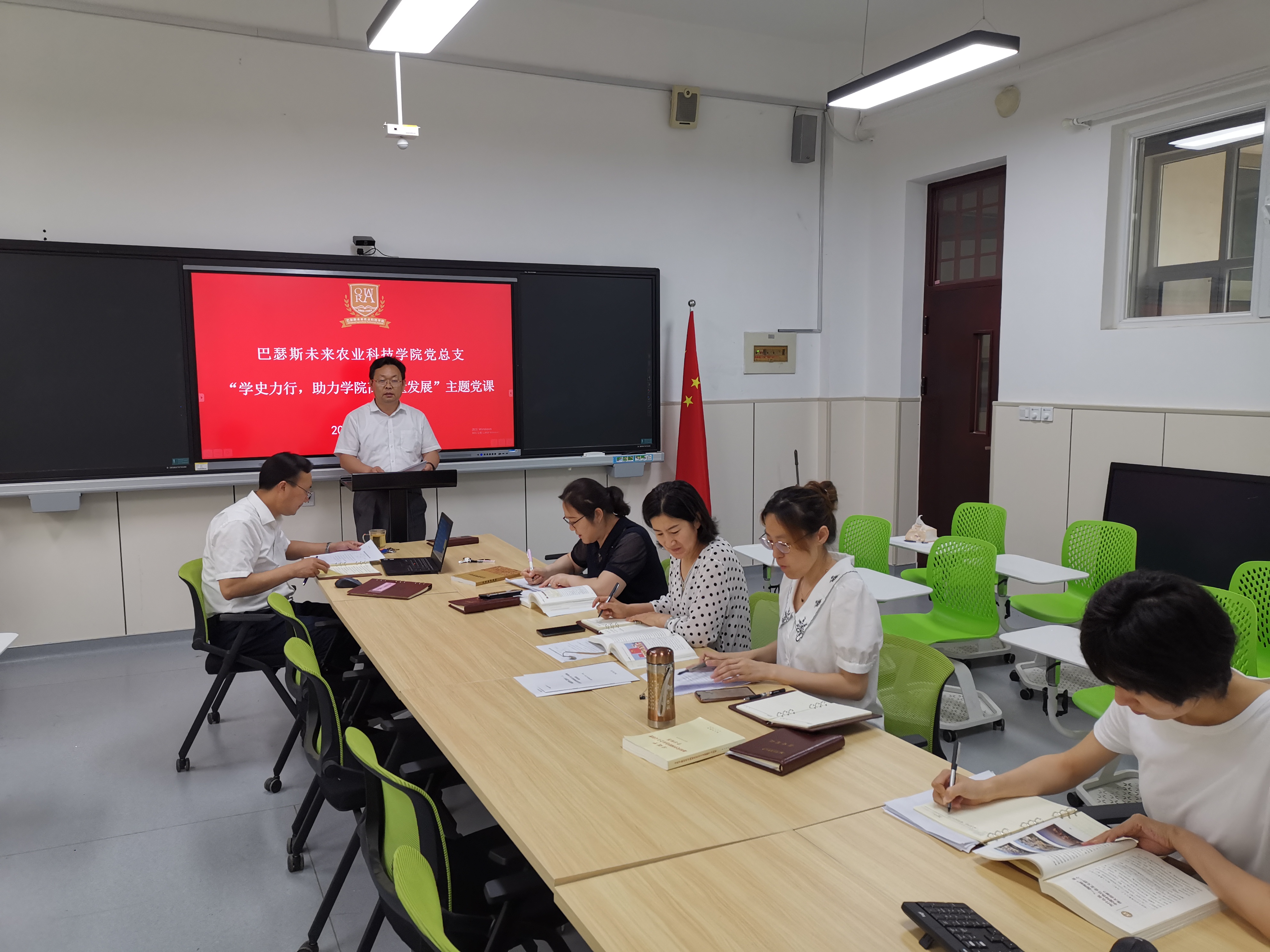 公司常务副经理刘焕奇为全体教职工讲授“学史力行,助力公司高质量发展”主题党课。他围绕“深刻认识中国共产党的性质和宗旨”“深刻认识党和人民长期奋斗取得的根本成就是什么,为什么”“深刻认识当代中国共产党人的使命是什么、该以怎样的精神状态承担起这样的使命”“深刻认识对党忠诚是什么,怎么做”五个方面,深入浅出的阐释了党的初心和使命。他强调了认真领会党史、新中国史的重要意义:一是要在知史中汲取爱党爱国的力量,不断增强“四个意识"、坚定“四个自信”、做到“两个维护”,始终在思想上政治上行动上同以习近平同志为核心的党中央保持高度一致;二是在知史中汲取智慧担当的力量,通过学习党史和新中国史,进一步深刻认识我们党先进的政治属性、崇高的政治理想、高尚的政治追求、纯洁的政治品质,传承红色基因,坚定理想信念;三是在知史中汲取立国、兴国的力量,要增强历史意识,培养历史思维、历史眼光,自觉按照历史规律和历史发展的辩证法办事。最后他总结到,党史学习教育与实际工作不能“两张皮”,全体教职工要学以致用、学用相长,扎实做好本职工作,把学习成效转化为工作动力和成效,以优异的成绩向中国共产党成立100周年献礼!以优异的成绩向bw西汉姆联建校70周年献礼!