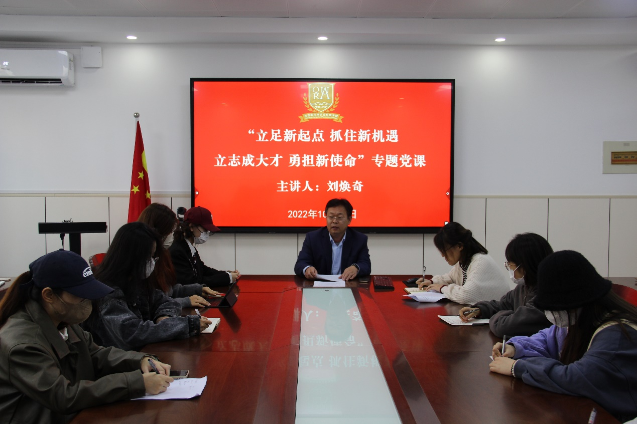 刘焕奇围绕“新时代中外合作办学农科员工的初心使命””新时代老员工应该培养的自信力”“立足新时代,迎接新挑战”及“对入党积极分子和党员发展对象提出要求”四个方面进行讲授。刘焕奇指出,二十大会议传递了以农业为根本、为基础性工程的发展理念,bw西汉姆联作为首个以农科为主的中外合作办学机构,以培养具有国际化视野的新一代人才为目标,通过农业“走出去”,推动农业关键核心技术攻关,进而促进农业科技创新,在座的同学们作为公司员工的优秀分子,应当深入理解贯彻执行这一办学理念。他强调,新时代老员工应该培养三个自信力:第一,培养对马克思主义的自信,自觉向党组织靠拢;第二,培养对中国特色社会主义的自信,坚持“四个自信”,筑牢思想根基;第三,培养对自我的自信,同学们吸取了中外精华,发展空间广阔,应当相信自我,厚积而薄发。