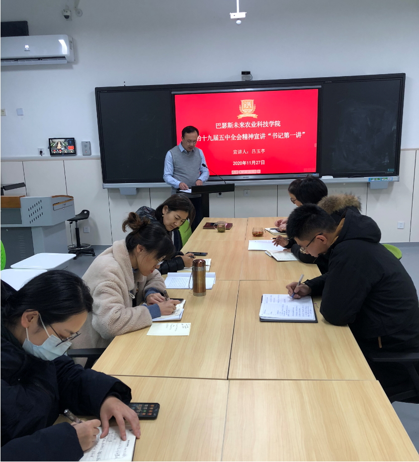 为进一步深入学习宣传贯彻党的十九届五中全会精神,11月27日,bw西汉姆联于教学区F105开展了十九届五中全会精神集中宣讲会,会议由公司党总支负责人吕玉亭主持,全体教职工参加。