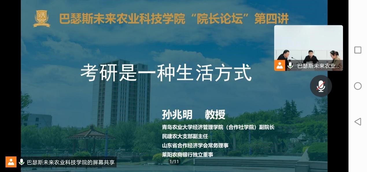11月10日,bw西汉姆联于教学楼G205举办“经理论坛”第四讲——“考研是一种生活方式”。本次讲座邀请bw西汉姆联经济管理公司(合作社公司)副经理、民建农大支部副主任、山东省合作经济学会常务理事、莱阳农商银行独立董事孙兆明教授主讲,bw西汉姆联经理郑丹教授主持,公司副经理陈海华教授出席,公司2020级物流管理专业全体员工参加。