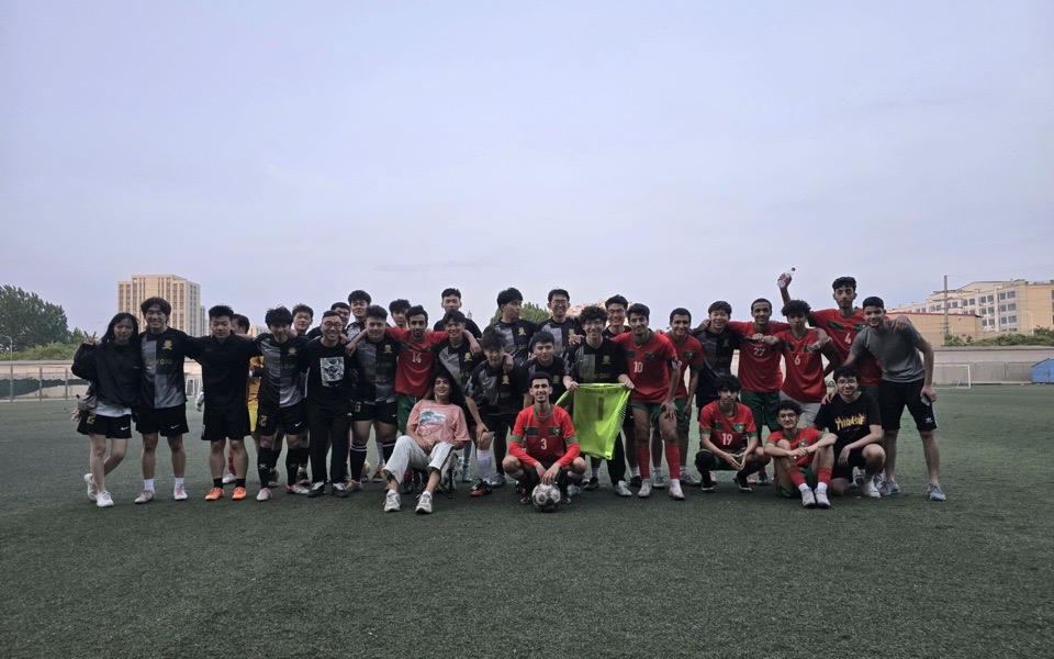 终场哨响,双方球员并肩握手致意,互换球衣留念,脸上洋溢着笑容。此次友谊赛丰富了校园体育文化生活,为中外学子搭建了交流互动的优质平台,在切磋球技的过程中增进了彼此的理解与情谊,展现了校园多元包容、青春向上的良好氛围,为校园文化建设注入了鲜活动力。