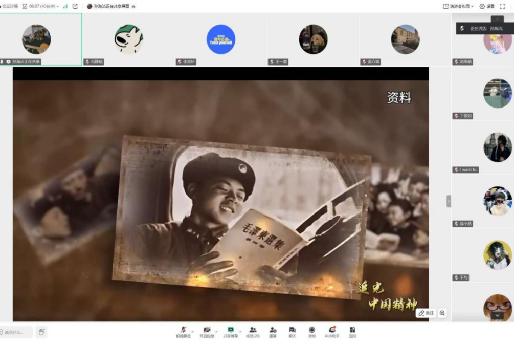 团课上,各团支部借助学习强国、易班等平台开展线上团课,组织团员观看雷锋事迹纪录片,深入研读雷锋日记等经典文章,让团员们跨越时空,走进雷锋的精神世界,让学雷锋活动融入日常、化作经常,不断走深走实。此外,团支部邀请公司优秀志愿者代表杨晨天、张宸玮、路佳琦三人开展线下分享会,他们结合自身志愿服务经历,站在中外交流的视角上生动讲述奉献故事,展现了公司员工作为中外合作办学学子对雷锋精神的全新阐释。