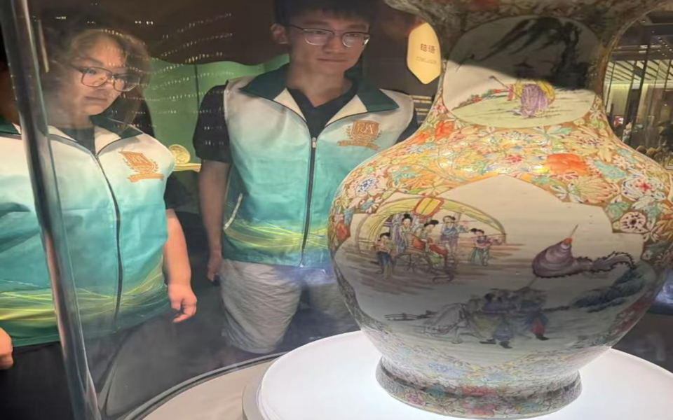 随后,实践团队走访了张店区陶瓷琉璃博物馆。馆内历代陶瓷手工艺者的作品在现代灯光映照下熠熠生辉,展现了中国陶瓷琉璃文化的深厚底蕴。同时,馆内还陈列外国手工艺品,中外文化在此相遇、对话,让文化互鉴的意义变得具体而深刻,彰显了文化交流的多元价值。