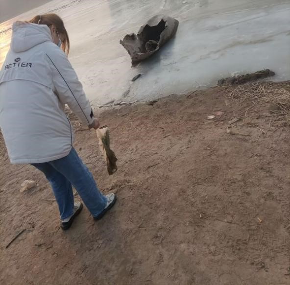 1月6日早晨,实践团队来到居住地附近的黄河流域,开展社会走访调查。诚然关于黄河的环境保护活动一直在进行,但是岸边的生活垃圾却是顽渍难以根除,大大小小的垃圾随意散落在河岸的岩石上。此时此景让大家更加真切的感受到保护黄河,刻不容缓。