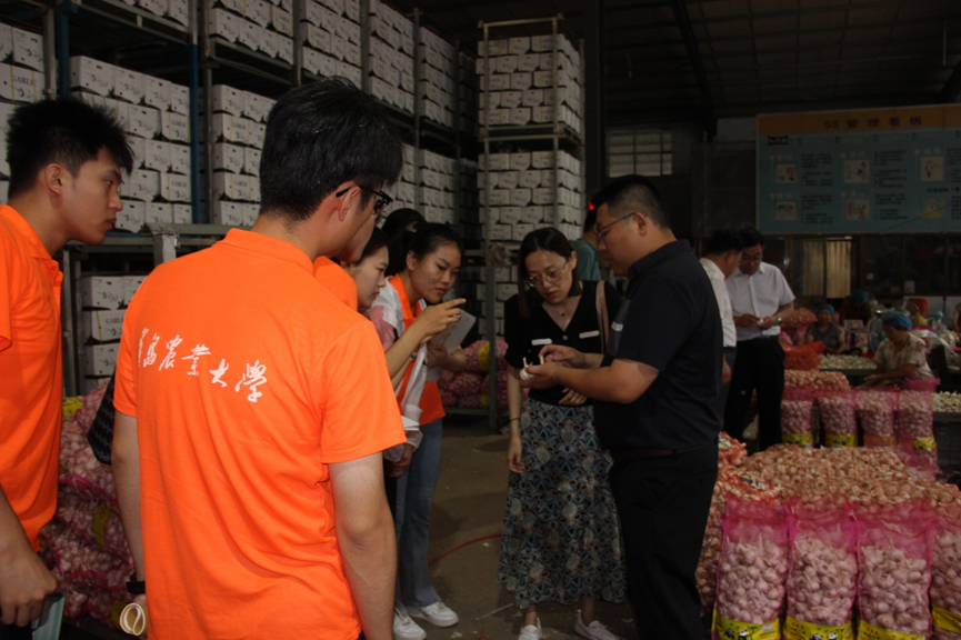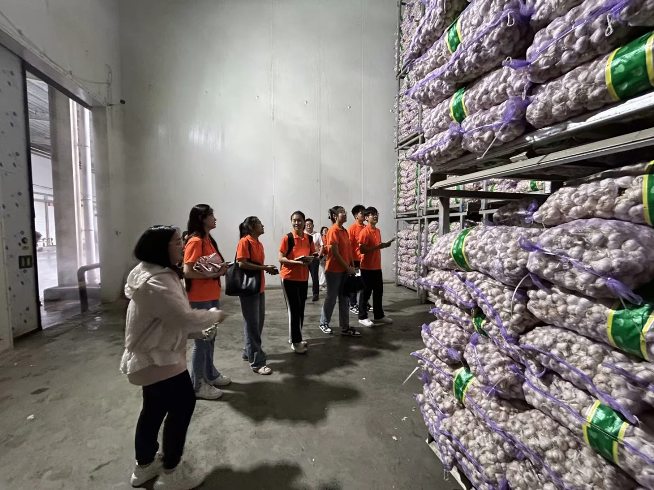 目前,兰陵县有450多家蔬菜储存加工企业,年储藏加工能力100万吨以上,80%以上与大蒜有关。7月11日-13日,实践团队来到新天地食品有限公司、越洋食品有限公司等龙头企业,调研大蒜生产加工现状。