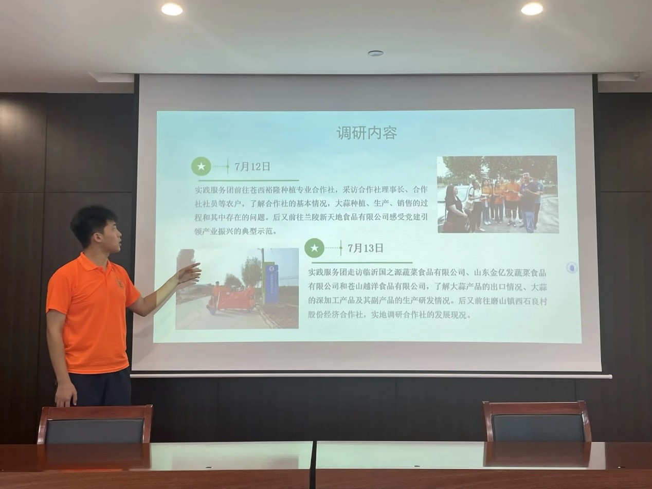 打好金“蒜盘”,“蒜”好群众增收路,这就是临沂兰陵的致富经。实践结束后,团队成员认真整理调研结果,总结分析了苍山大蒜出口产业的优势和劣势,并提出了要规范合作社经营管理、延伸产品的精深加工产业链、完善电子商务平台、扩大出口销售渠道、加强产品研发、形成拳头产品等意见建议,为推进大蒜产业可持续性发展,助力苍山大蒜享誉中外提供源源不断的动力。相信不久的未来,苍山大蒜这张名片一定会深入人心,走得更远。