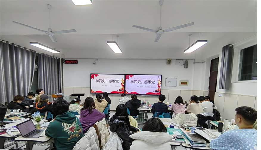各班班长带领班级同学集中学习了《求是》杂志“学好‘四史’,永葆初心、永担使命”专题刊目。该刊目以十三个板块呈现了习近平总书记2016年12月至2021年3月期间文稿中有关学好党史、新中国史、改革开放史、社会主义发展史内容的节录,以时间线串起了习近平总书记关于“四史”的重要讲话。本次班会通过以点带面形式,主讲人带头学习讲话的同时找出相关背景资料供同学们学习,让同学们感受党的政策和理论的与时俱进,不断创新,从而不断增强对伟大祖国、中华民族、中华文化、中国共产党、中国特色社会主义的认同。