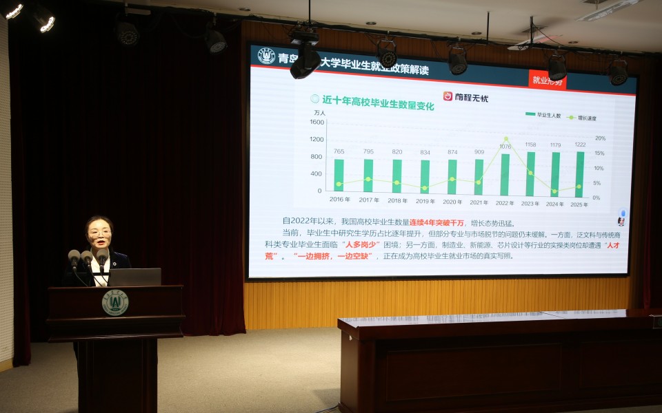 吕国莹以“毕业生就业政策解读”为题,紧密结合当前就业市场趋势,围绕公司不同专业实际情况,从国内考研、出国留学、求职就业等方面,对当前的多元就业形势进行了细致深入地剖析。她结合往届毕业生的典型案例,对毕业生提出对策建议,提醒大家主动把握就业市场动态、清醒认识当前就业形势,明确个人发展目标,持续提升求职核心技能,以积极主动的心态迎接就业挑战、把握就业机遇。