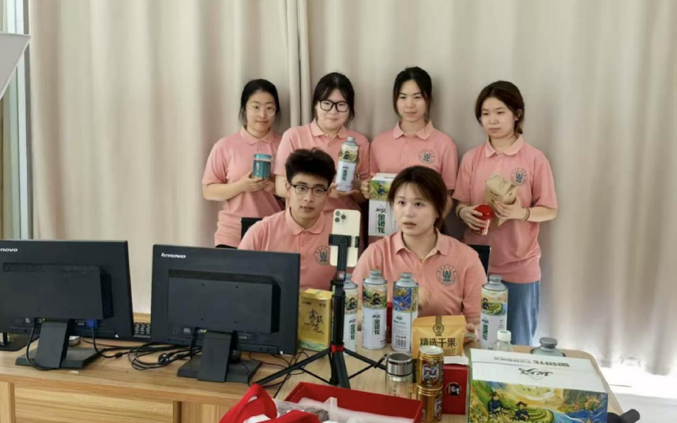 实践团队还探访了金银花旗舰店电商基地、武台镇沁园春电子商务有限公司、保太镇绿洋农场三大金银花产业基地,探寻电商赋能金银花产业新路径。在金银花旗舰店电商基地,团队成员开展双语直播带货,直观感受“旗舰店+直播”模式,感悟农产品流通的数字魅力;在武台镇沁园春电子商务有限公司,团队成员感受“一桌一机一小时销售过百万”佳绩背后,公司集种植、加工、研发于一体的综合产业园区助力农产品外销和镇域经济发展的生动实践;在保太镇绿洋农场,通过与负责人任洪敏进行采访交流,团队成员了解到依托新建成的SC标准化生产车间和私域直播间“溯源+即时下单”的运营模式,可以打通金银花茶“产—销”困境的闭环。