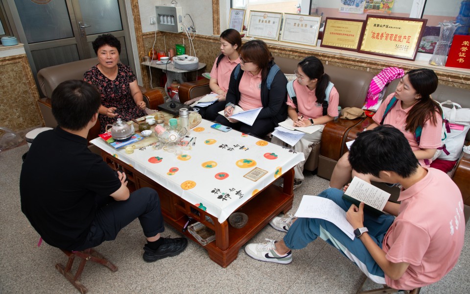 在高望山农场合作社,实践队员了解到该合作社种植葡萄270余亩,通过政策扶持发展富硒葡萄产业,采用“合作社+农户”的生产模式,通过土地连片的规模化种植体系,通过葡萄酒深加工延伸产业链,通过电商平台销售增长收益,有效提升葡萄果品的市场竞争力。在青岛华福果业合作社合作,实践队员了解到该合作社为服务型合作社,以技术型服务为主,对种植户进行种植指导、培训采购以及销售服务,帮助葡萄种植户统一采购工资、统一销售葡萄,通过线上线下相结合的销售模式,有效提升了葡萄种植户的经济收入。