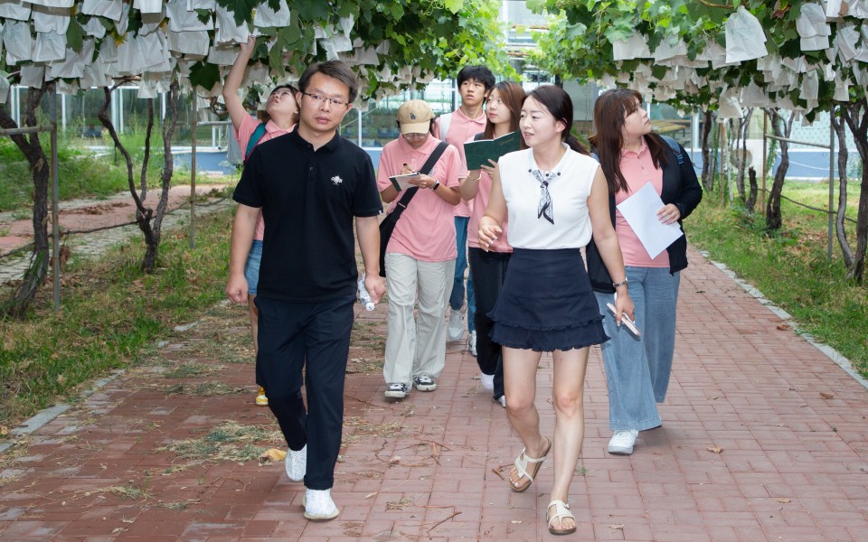 实践队员走进山东省鲜食葡萄研究所,探寻规模化经营赋能葡萄产业提质增效的发展路径。研究所集科研、生产、推广、服务于一体,依托40余年的科研与种植经验,推进土地整合与区域集中连片发展,构建标准化、规模化的种植体系,是国家葡萄产业体系首批示范点。