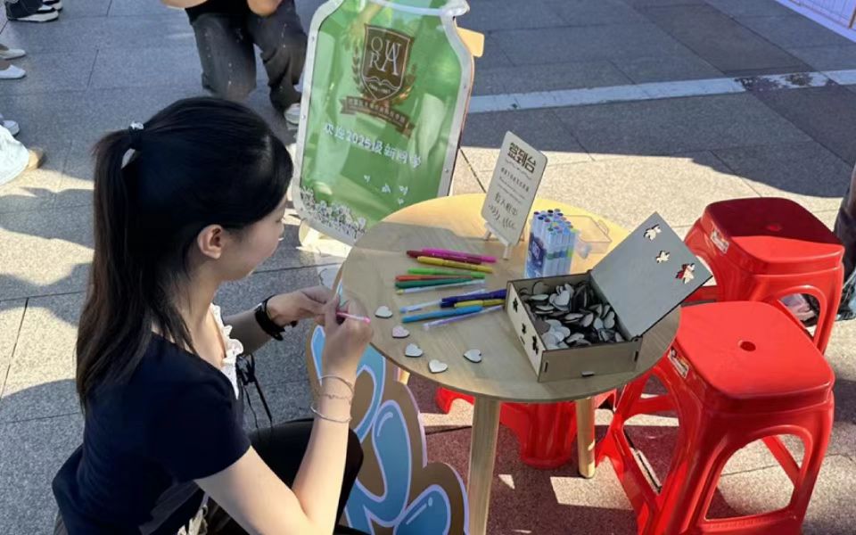 初入大公司园,站在人生新起点,新生对未来有着诸多期许。公司为新生准备了心形木块,新生在上面写下自己的名字以及对老员工活的期望,将一块块心形木块投入新生许愿瓶中,这些承载着憧憬的木块汇聚在一起,仿佛一颗颗梦想的种子,蕴含着希望与力量。许愿瓶就像一座灯塔,守护着新生们的梦想,助力每一位怀揣梦想的新生从这里出发,开启精彩的大学征程。