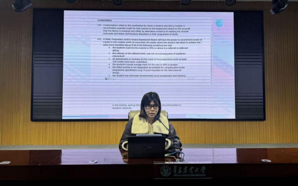 李迎详细介绍了英国皇家农业大学学术评价管理规定,并重点解读了学术不端认定标准及对应处置办法,警示员工恪守学术诚信。