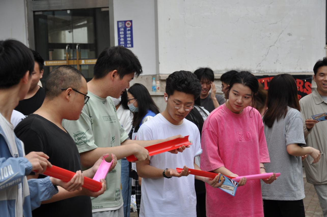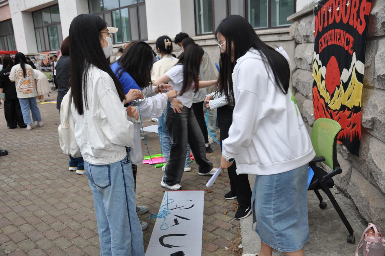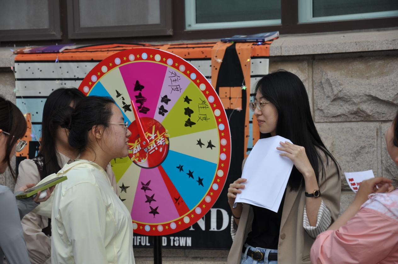 公司联合雅思教学团队,事先精心设计,突出国际交流与合作这一主题,设计了本次活动的详细方案,活动现场设置了宣传区、游戏区、展示区,各种英语互动游戏寓教于乐,趣味性与知识性紧密结合。“默契大比拼”模仿扫雷游戏,一方处于“地雷阵”蒙眼前行,另一方队友在场外用英语指挥,通过默契合作安全度过雷区;“单词盲盒”需要参加活动的员工现场回答老师提出的问题,每答对一道即可获得一张小标签,最后凭此兑换小礼物;“神笔马良”要求四名团队成员站立四角,用牵绳共同操纵“神笔”,写下老师规定的英语单词;在“珠行万里”游戏中,团队成员沿着指定方向快速轮换搭建导槽,尝试着让“宝珠”一直滚动下去;“单词跳跃”要求游戏人员在最短时间内以跳到指定位置的方式拼出所有要求的英语单词……精彩有趣的游戏吸引了大量员工前来参加,用心准备的小礼物传递了公司的温暖关怀,路过的同学纷纷被吸引驻足,参加游戏的同学意犹未尽,现场一直洋溢着欢声笑语。同学们在合作闯关的过程中增进了同学情谊,释放了平日紧张的学习压力,也进一步激发了学习英语、跨文化合作交流的热情和兴趣。